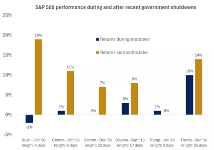 Technicals: While the stakes are high in the current government shutdown, history suggests decent returns will follow. Global equity market breadth may be pausing after a strong move higher. Meanwhile. Profitless technology stocks more than doubled in value during the 3rd Quarter, a sign of heightened speculation.